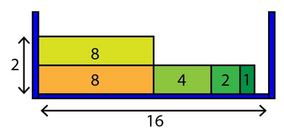 装积木时有个讲究,积木只能平放,例如,宽 $4$ 高 $1$ 的积木在盒子里只能占据横向为 $4$、纵向为 $1$ 的空间,而不能占据横向为 $1$、纵向为 $4$ 的空间。另外,积木也不能斜着放。